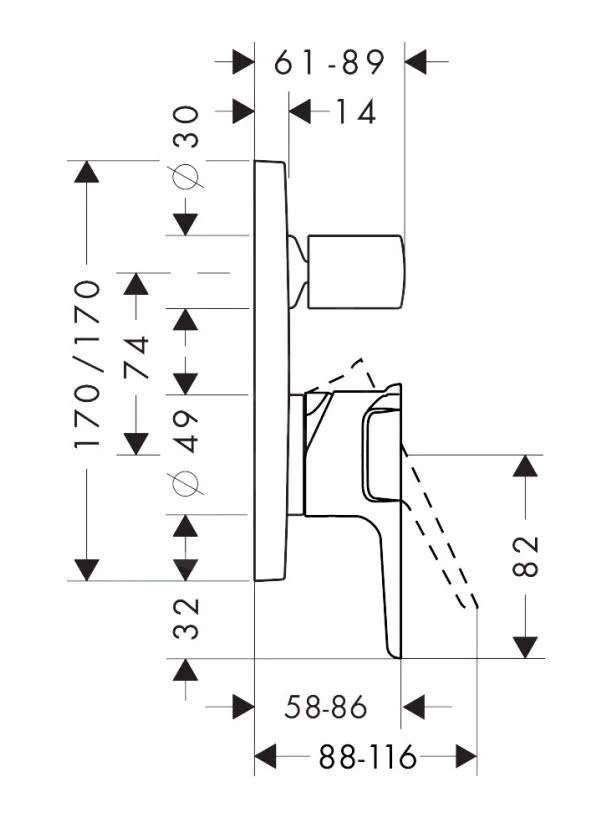 Eengreeps inbouw badkraan