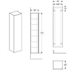 Geberit Acanto – Hoge Badkamerkast 1730×220 Mm, Met 2 Laden, Glanzend Wit 500.638.01.2