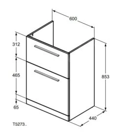 Ideal Standard I.Life A – Wastafelkast, 600x440x853 Mm, 2 Laden, Mat Carbon Grijs T5273NV