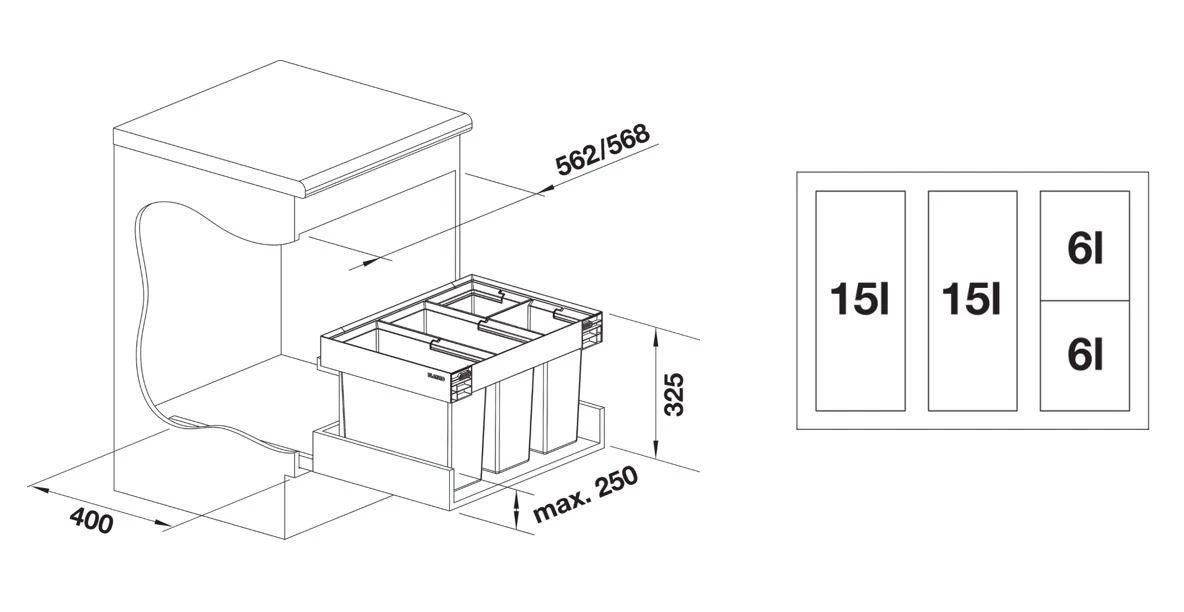 Inbouw afvalemmer Flexon II Low 60/4 l