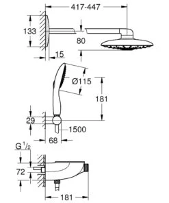 Grohe Vitalio Joy – Doucheset 310 Met Opbouw Thermostaat En Met Tray, 3jets, Chroom 26401001