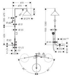 Axor Showerpipe Front – Showerpipe 279 Mm 2jet, Thermostatische Douchekraan, Chroom 26020000