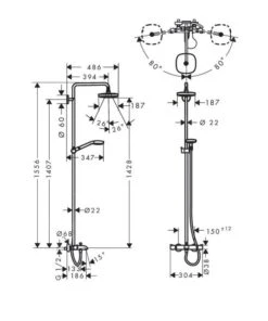 Hansgrohe Croma 220 – Doucheset Showerpipe 220 Met Thermostaat, EcoSmart 9l/min, Chroom 27188000