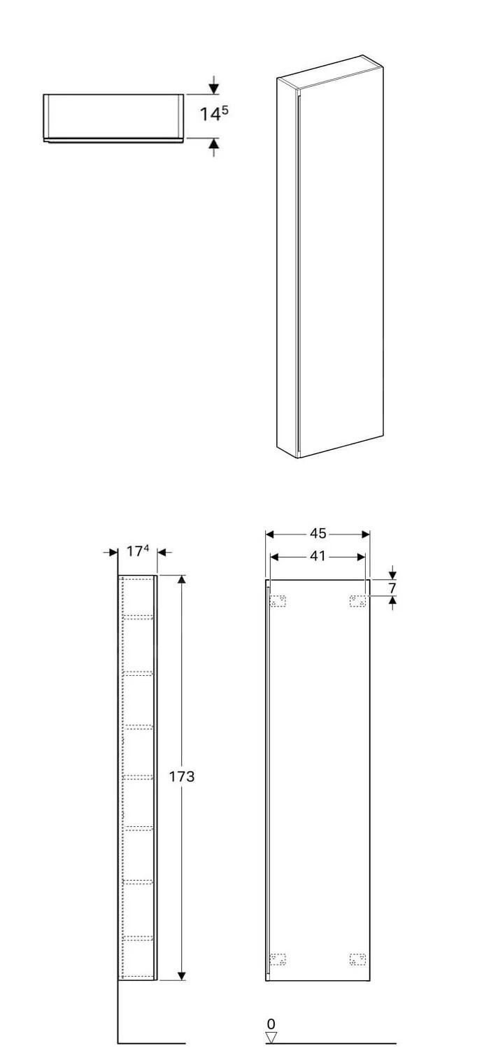 - afmetingen kastje: 45 x 173 x 17,4 cm (bxhxd)