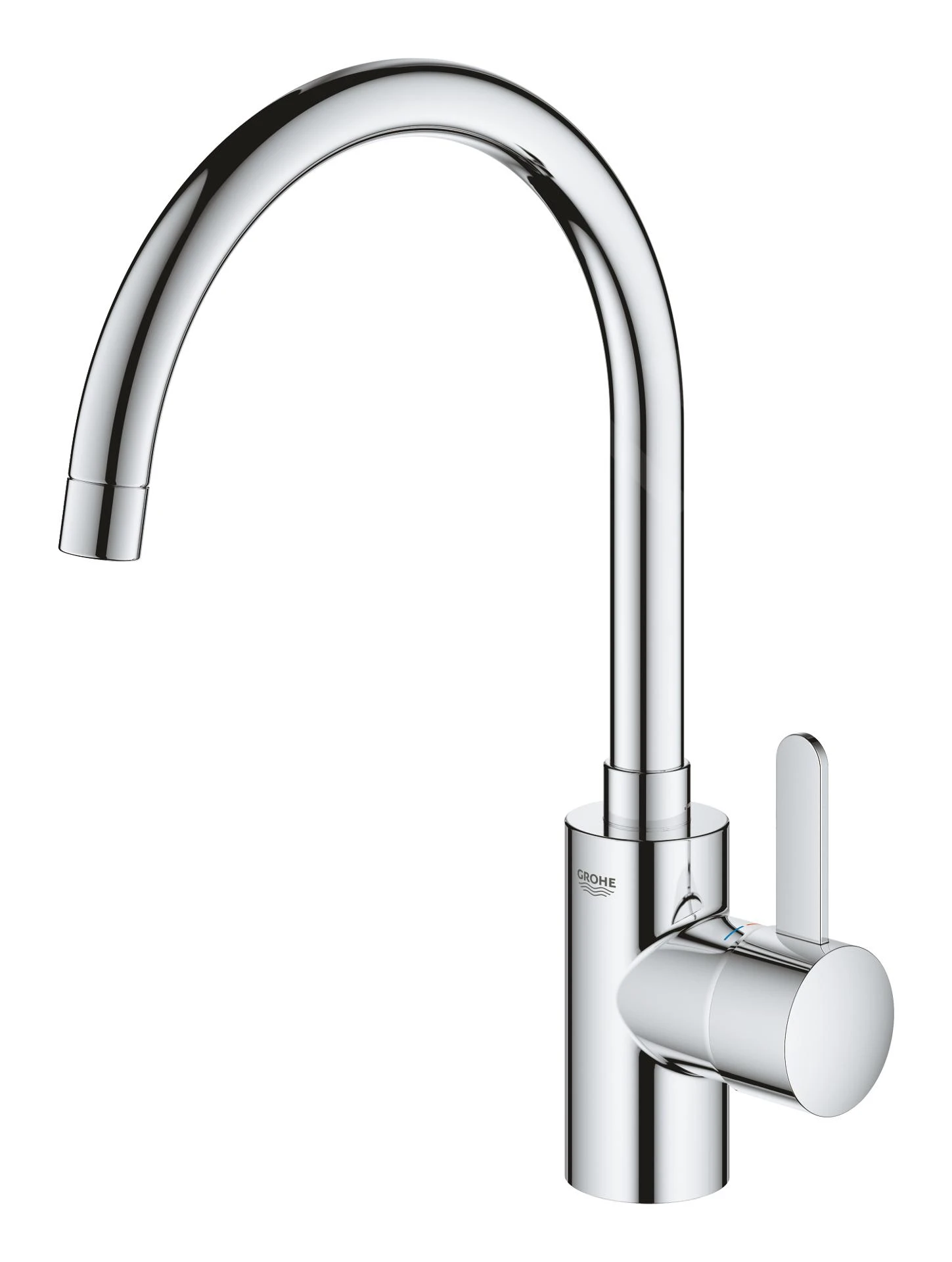 De GROHE Eurosmart Cosmopolitan keukenmengkraan is een stijlvolle toevoeging aan elke moderne keuken. Het simpele, maar toch hedendaagse ontwerp ondersteund door slimme functies maakt van deze keukenkraan een duidelijke keuze voor iedereen die ook voor een betaalbare oplossing op zoek is. Het voordeel van deze keukenkraan is zeker de hoge draaibare uitloop die maximale flexibiliteit bij de spoelbak biedt. Het draaibereik van de uitloop is bovenop instelbaar op 0° of 150°. De spoelbakkraan is daarom ook prima geschikt voor dubbele spoelbakken of voor installatie op een kookeiland.