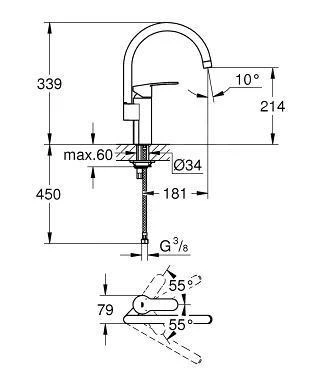Deze keukenkraan uit de GROHE Eurosmart lijn beschikt over een hoge uitloop zodat hoge pannen gemakkelijk gevuld kunnen worden. Het draaibereik van de uitloop kan ingesteld worden op 0°, 150° of 360°, waarbij de uitloop vrij kan draaien, maar ook in een aantal posities kan worden vergrendeld. De GROHE SilkMove® technologie zorgt voor een vloeiende en nauwkeurige regeling van de hoeveelheid en temperatuur van het stromende water. Dankzij ons eenvoudige installatiesysteem is de montage van de keukenkraan moeiteloos en in een mum van tijd klaar. Deze stijlvolle keukenkraan wordt het functionele en visuele middelpunt van uw keuken: door de slijtvaste GROHE StarLight® afwerking zal hij er ook na jarenlang gebruik nog altijd als nieuw uitzien.