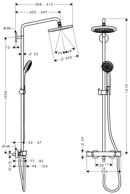 De Hansgrohe Showerpipe systemen kunnen op de bestaande aansluitingen worden aangesloten (installatie aan de wand). Een ideale oplossing voor een probleemloze modernisering en de snelste manier om een grote hoofddouche te verkrijgen.