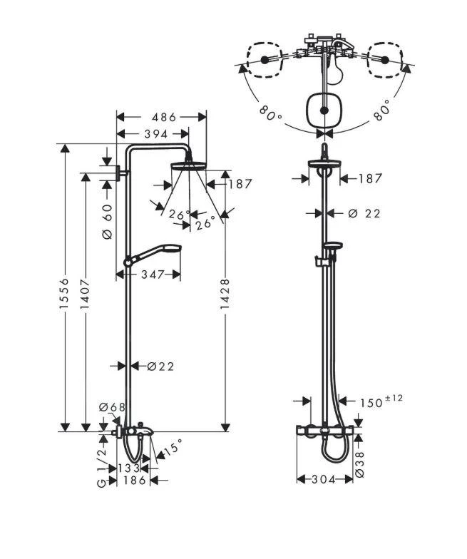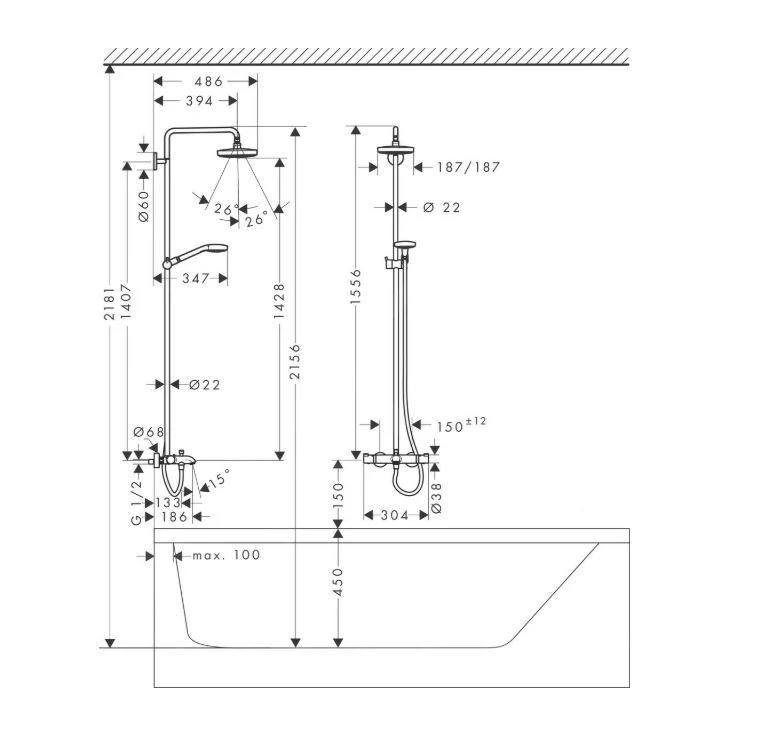 Thermostatische badkraan Croma Select Showerpipe E, 2jet