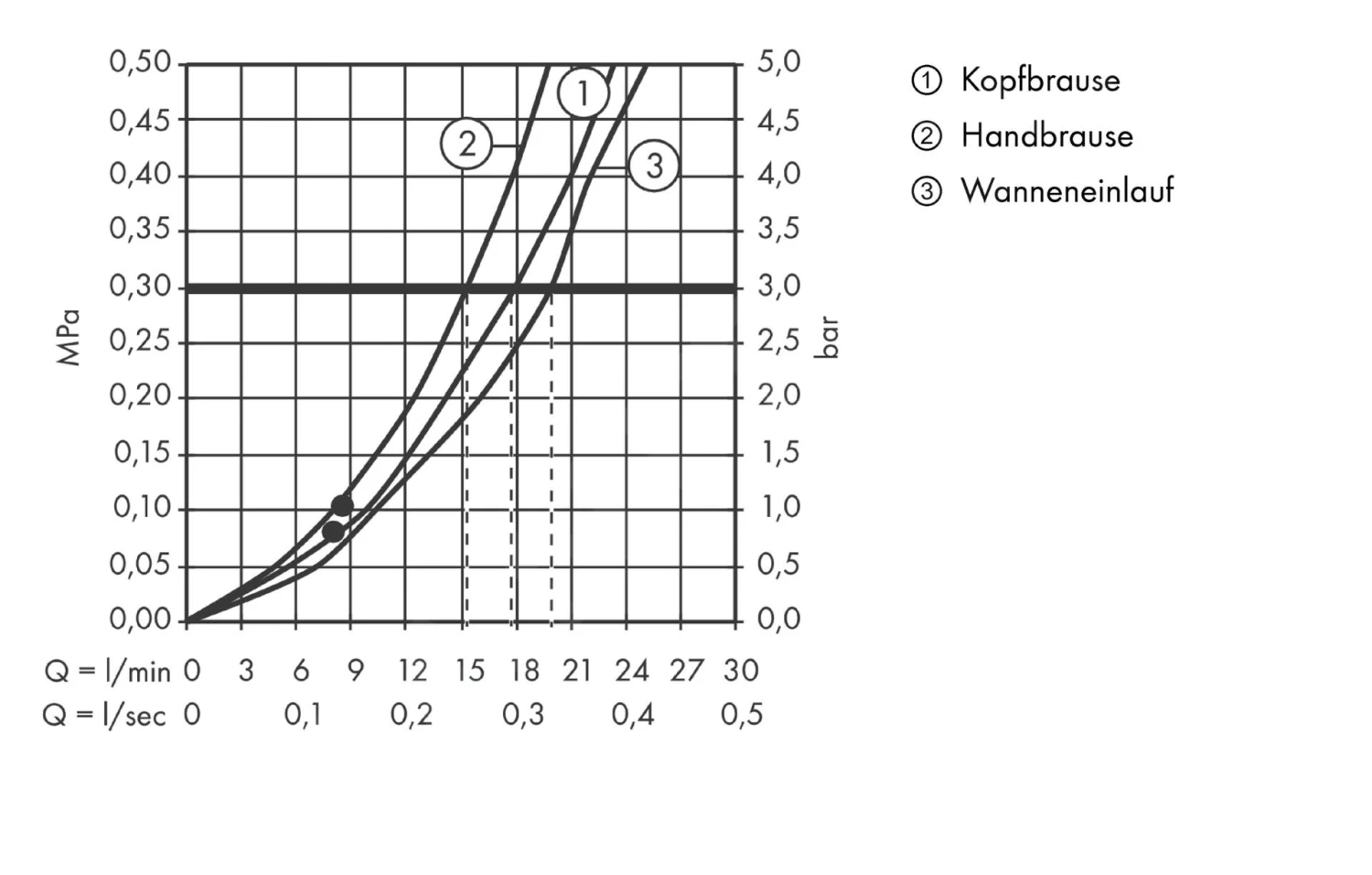 - maximale doorstroming bij 0,3 MPa: 18 l/min