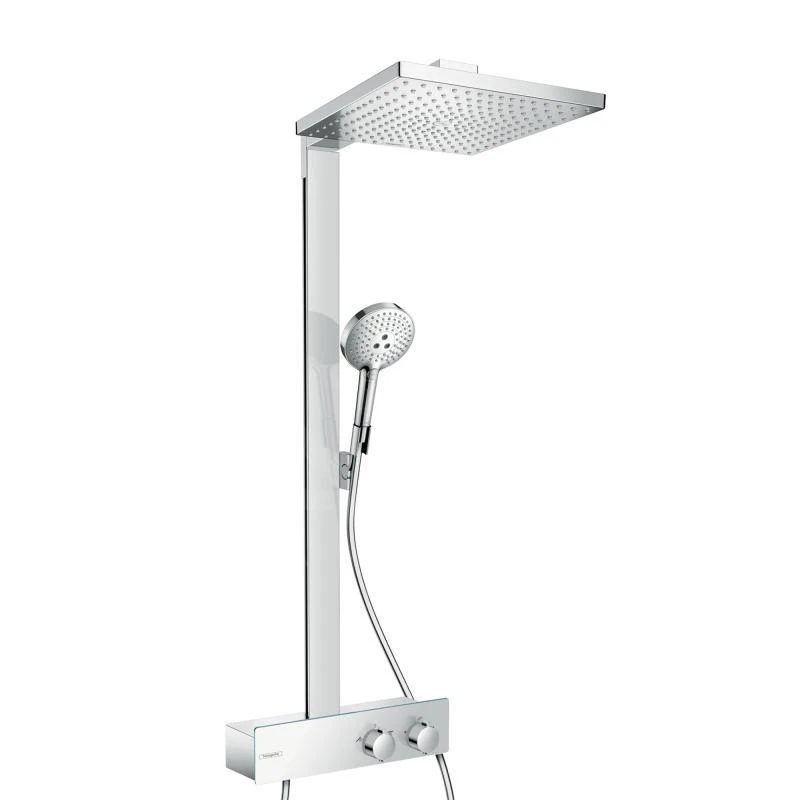 Luxe uitstraling en functionaliteit – dat is hansgrohe Raindance E Showerpipe. Kies voor deze stijlvolle doucheset met regendouche en geniet van een royale hoofddouche en topprestaties die je van hansgrohe mag verwachten. Het cruciale onderdeel van deze doucheset is de hoogwaardige thermostatische douchekraan vervaardigd in de karakteristieke ShowerTablet design met een praktisch planchet. Voor de alledaagse douchebeurt zorgt dan een handdouche met bijpassende doucheslang. Voor compleet gebruikersgemak staat ook garant de verstelbare douchehouder, die bovenop 90° instelbaar is, draai simpelweg naar links of rechts, omhoog of omlaag.