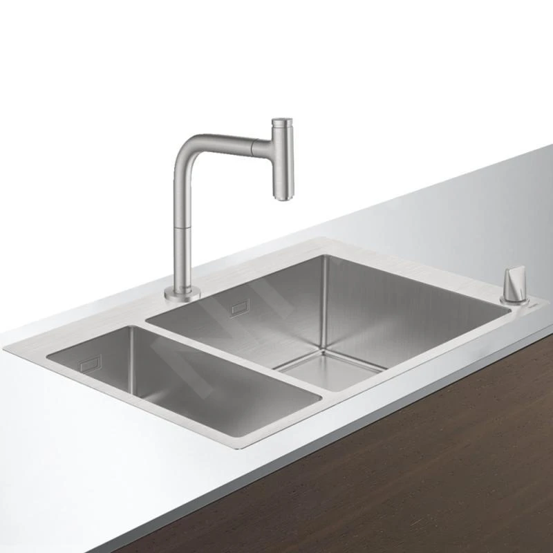 Tweegats keukenkraan met uittrekbare uitloop, roestvrijstalen look