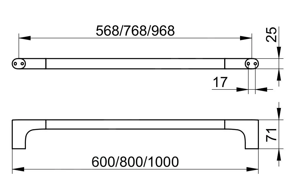 - totale afmetingen:Â 71 x 600 x 25 mm