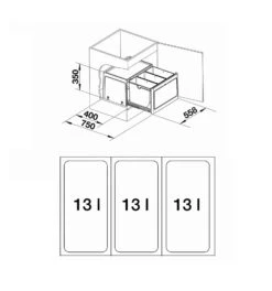 Blanco Flexon II – Inbouw Afvalemmer, Met Scheidingswand, Inhoud 42 L 526644
