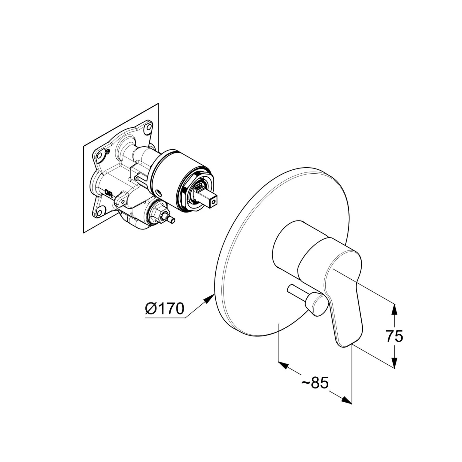 Eengreeps inbouw douchekraan zonder inbouwdeel