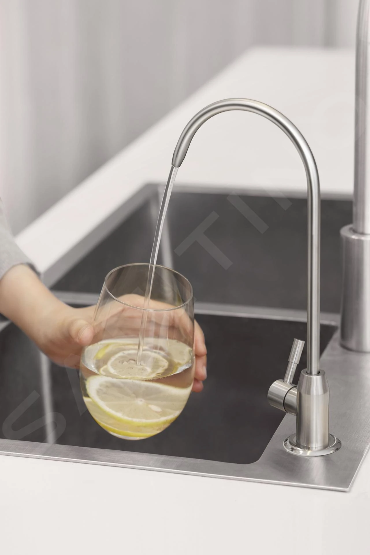 Ten slotte wordt het water door een mineralisatiefilter geleid, waardoor het met mineralen wordt verrijkt en de smaak nog verbetert. Het verrijkt het water met bijvoorbeeld calcium en magnesium en herstelt het pH-evenwicht.