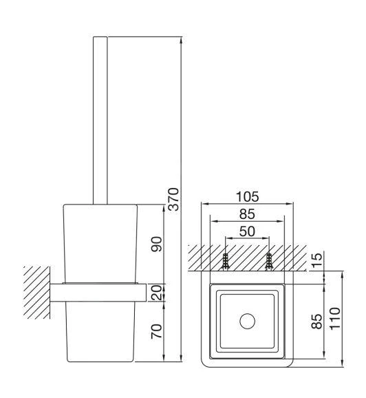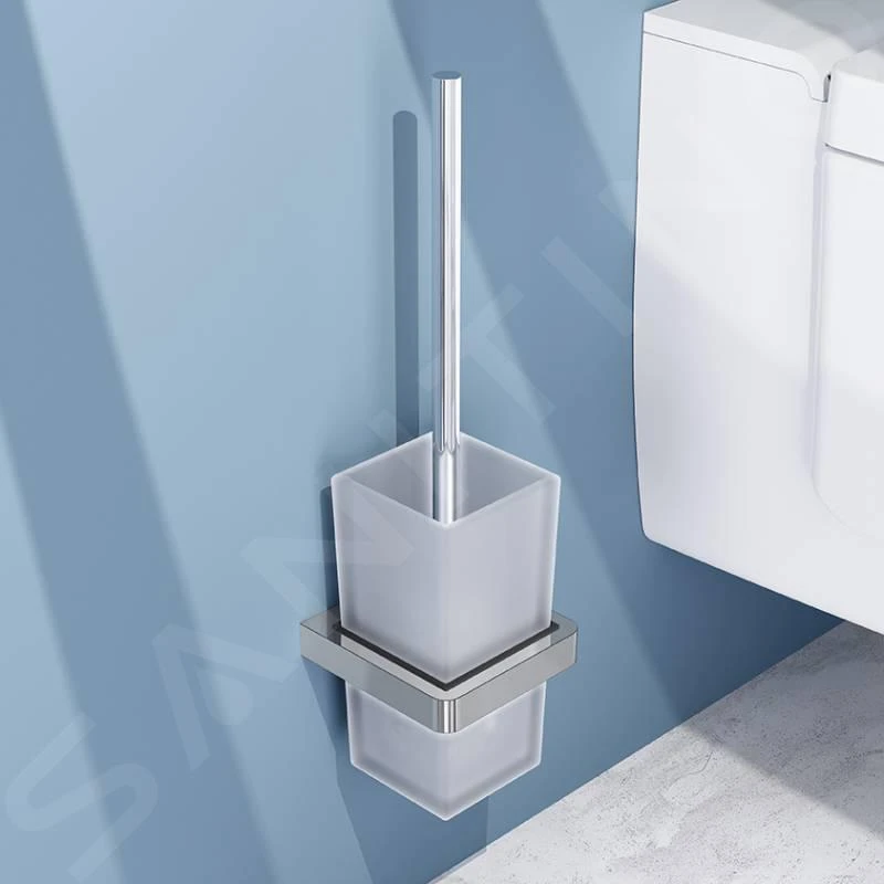 Toiletborstel, chroom, wit glas