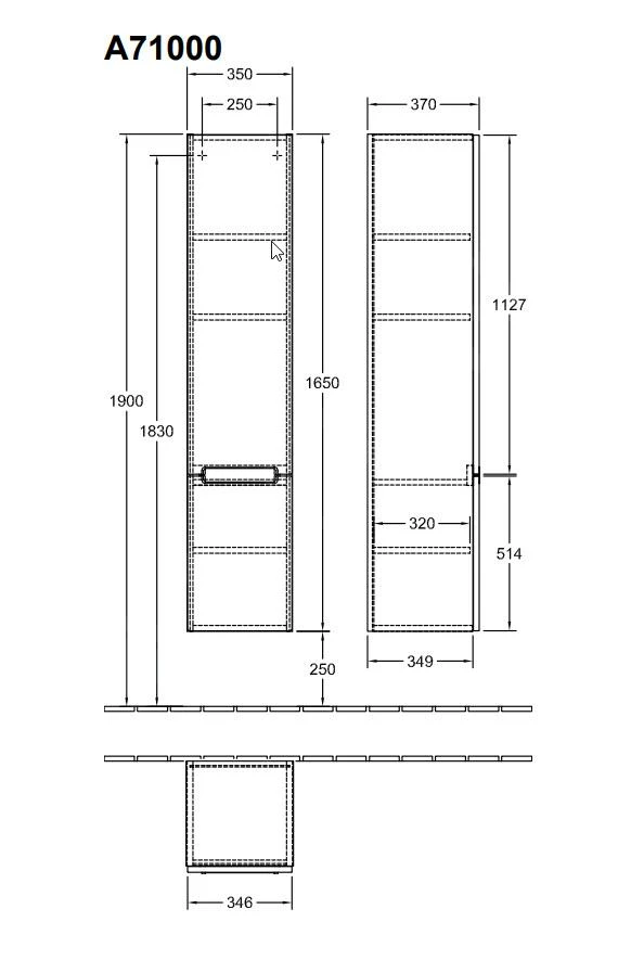 - afmetingen kast: 350 x 1650 x 370 mm (bxhxd)